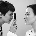 使用前应将前房角接触镜用肥皂水洗净,清水冲洗,拭干后浸于1:6000升汞液中15~30分钟待用。安放时,先在结膜囊内滴0.5%的卡因2~3次,令患者眼向下看,检查者把患眼的上睑向上提起,将盛满1%甲基纤维素或生理盐水的接触镜安放在结膜囊内,令患者双眼轻轻紧闭,以防脱落,使用时镜面与角膜空隙内不许有气泡,方能保持一个完整的屈光间质,有利于检查。