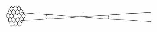 实验证明,正常人在0.5~1分视角下看清物体时,其在视网膜上的物象约等于0.002~0.004毫米,大致相当于锥体的直径。由此推知,分辨两个点在视网膜上单独存在的主要条件是两个感光单位(锥体)的兴奋,而在这两个锥体间至少要被一个不兴奋的锥体所隔开。如果点的象落在邻近两个锥体时,这个象就会重合而不能分辨了(图2-1)