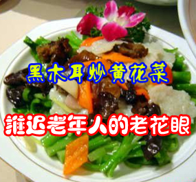 原料 木耳20克,黄花菜80克,精盐、味精、葱花、花生油、湿淀粉、素鲜汤各适量。 制法 (1)将木耳放入温水中泡发,去杂洗净,撕成小片;黄花菜用冷水泡发,去杂洗净,挤去水分,切成小段。 (2)锅中放花生油烧热,放入葱花煸香,放入黄花菜段、木耳、煸炒,加入素鲜汤、精盐、味精煸炒至木耳、黄花菜熟而入味,用湿淀粉勾芡,出锅即成。 特点 滑润清淡,咸香适口。 提示 黄花菜要用干品,鲜黄花菜含有秋水仙碱素,炒食后能在体内被氧化,产生一种剧毒,一般食后30分钟至7小时出现中毒症状,轻者恶心呕吐,重者腹痛、腹泻,严重时会出现血尿血便。
