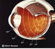 葡萄膜,形似紫色的葡萄而得名,是眼球壁的第二层,可分为前中后3部分,即前部的虹膜,中部的睫状体和后部的脉络膜。脉络膜位于巩膜和视网膜之间,为葡萄膜面积最大的部分。正常的脉络膜是一层柔软光滑而具有一定弹性的棕色薄膜,富含血管和色素,其厚度为0.1毫米~0.2毫米。它犹如照相机上的暗箱,起遮光作用。