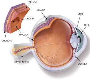 从光学观点出发,视网膜是眼光学系统的成像屏幕,它是一凹形的球面。视网膜的凹形弯曲由两个优点:(1)眼光学系统形成的像有凹形弯曲,所以弯曲的视网膜作为像屏具有适应的效果,(2)弯曲的视网膜具有更广宽的视野。