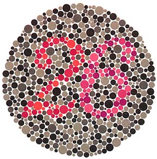 红绿色盲者中的红色盲者能读出6,而绿色盲者能读出2,但红绿色弱者及正常者则两个字都能读出来。