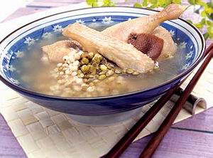 【材料】石斛20克、野菊花5克、水鸭半只、猪瘦肉150克、生姜3片。