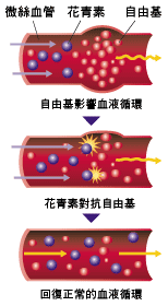 花青素是强效的抗氧化剂,可维持正常的细胞连结、血管的稳定、增进微细血管循环、提高微血管和静脉的流动。