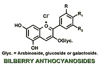 山桑子 (Bilberry/ Vaccinium myrtillus ):又称欧洲蓝莓、越橘,是生长在洛基山和阿尔卑斯山海拔1500-2500 公尺的 一种杜鹃花科多年生的长绿灌木,主要 产于北欧、美国的北方及加拿大, 山桑子紫黑色 浆果产于 夏、秋两季,因为 营养丰富、功效独特深受欧美消费者的青睐。山桑子果实提取物富含各种 生物类黄酮,其中的 「花青素 (Anthocyanosides )」是 一种强效的天然 抗氧化剂。