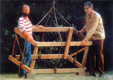 照片A:美国魔术师杰瑞*安德鲁斯发明了一个“疯狂的板条箱”。他怎么能把那么多竖直的支撑杆似那么不可能的方式连起来呢?看下一张照片就明白他是如何完成的。 照片A:美国魔术师杰瑞*安德鲁斯发明了一个“疯狂的板条箱”。他怎么能把那么多竖直的支撑杆似那么不可能的方式连起来呢?看下一张照片就明白他是如何完成的。