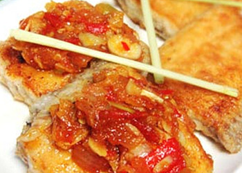 4、锅内做油先爆香茅,取出炸熟带鱼骨刺取出,用满是香茅味道的油,将带鱼肉煎熟。