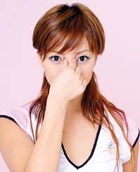 略仰头,眼光下移到鼻翼的中点。按时吸气,松时呼气,共36次,然后轻揉36次,每次停留2~3秒。