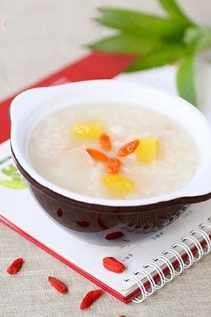 制法:枸杞洗净,南瓜去硬皮部分,切小丁。小米和红米淘洗干净。一起放到砂锅中,小火熬制40分钟即可食用,或用压力锅烹熟。