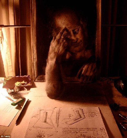 这张画框中的男子似乎正递一支笔