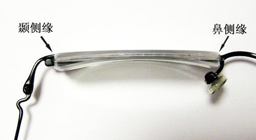如前所述,近视镜片的厚度主要表现在框架眼镜的水平方向,由于大部分镜架的几何中心距大于人眼瞳距,以致很多情况下镜片颞侧缘明显较鼻侧缘厚,而镜片的颞侧缘恰恰是最容易被外人观察到的地方。因此,选择几何中心距与配镜瞳距接近的镜架,使镜片的鼻、颞侧缘相近,可以有效降低镜片颞侧缘厚度,改善外观。