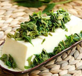 香椿拌豆腐清火补钙 有的人(男性较多)体质偏热,工作压力大,容易上火,如果用上述办法处理过的香椿凉拌豆腐,有着清热解毒的食疗功效。这道菜白绿交互,清香爽口,又能促进食欲,是适合早、中、晚任何一餐的美味菜肴。香椿拌豆腐中钙的含量很高,是膳食补钙的有效途径。人体保证了充足的钙,就能镇定情绪、遇事沉稳,否则很容易激动、慌乱,面临中考和高考的学生,可以选用这道香椿拌豆腐。 |