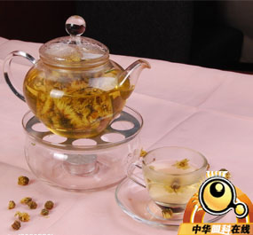 菊花、金银花、茉莉花均少许,泡水作茶饮,可清热解毒,适用于防治风热感冒、咽喉肿痛、痈疮等,常服更可降火,有宁神静思的效用。