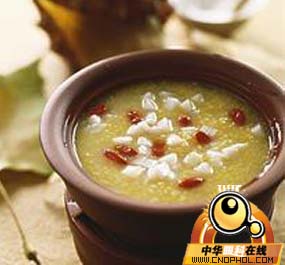 营养点评:原料中叶黄素、玉米黄素和胡萝卜素都非常丰富,口感香甜柔软。如今正值冬季,喝这样一碗金黄色的热粥既养胃又养生,还能养眼。