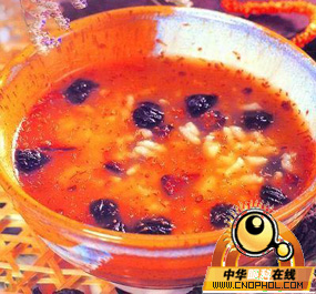 【原料】桑椹罐头50克,糯米100克,冰糖适量。