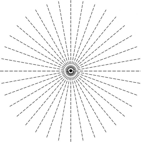 遮去一眼, 从较远处移近, 能分辨虚线, 观察是否黑白均匀,若出现特深或直线, 提示可能有散光,需要散光柱镜矫正。