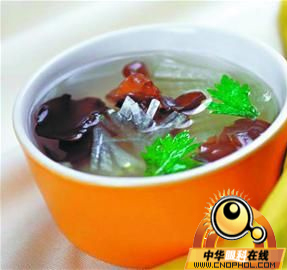 本汤滋肾平肝,降脂减肥降压,汤中香菇又叫香蕈、冬菇,性味甘平,功能健脾益胃,含有蛋白质,脂肪、多种氨基酸,多种维生素。木耳又叫云耳,性味甘平,功能凉血润燥,含有蛋白质,糖,胡萝卜素,维生素(B1、B2),麦用甾醇,卵磷脂,脑磷脂等。香菇、木耳自古以来被人们为素食佳品,据研究证明,两者均可降低血清和肝脏胆固醇含量,防止动脉壁脂质沉积和动脉粥样硬化斑块的形成,其中个别成分的降胆固醇作用比西药安妥明要强10倍。淡菜为厚壳胎贝的肉,又称珠菜、东海夫人,性味甘咸微温,功能补肝肾,益精血、属低脂海鲜食品。合而为汤,滋肾平肝,降脂降压,明目美眼,减肥健美。本汤亦可用于护肤美容消斑。 |