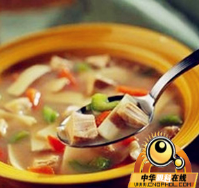 烹饪方法:先将肉片用料酒、精盐调味,加水煮沸5分钟,加入苦瓜、荠菜煮汤,调入味精即成 |