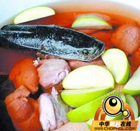 【做法】生鱼去鳞、去鳃,用清水冲净鱼身、抹干。用姜落油锅煎至鱼身成微黄色;苹果、生姜、红枣洗干净后,苹果去皮去蒂,切成块状;生姜去皮切片,红枣去核,瓦煲内加入适量清水,用猛火煲滚。然后加入全部材料,改用中火继续煲两个小时左右。加入盐调味,即可饮用。每日两次,早晚饮用。
