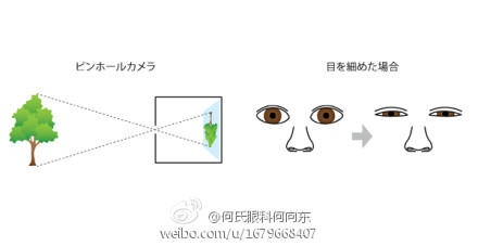 眯眼就相当于眼睛变成了一台针孔照相机,物体的光线通过小孔后,能在视网膜上形成清晰的图像。还有人认为,除了针孔的作用,眯眼还可引起眼球形状的变化,使得视物变得清晰。