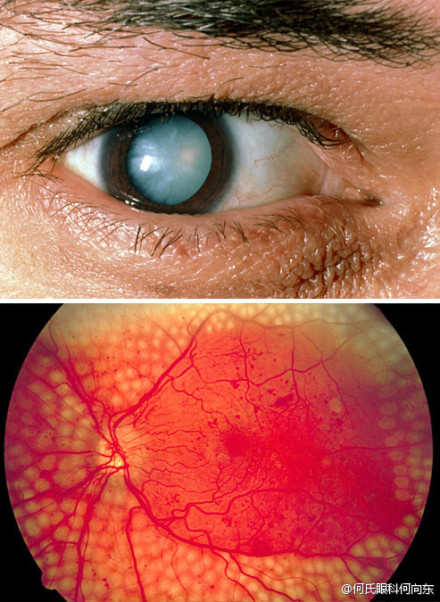 糖尿病视网膜病变可能导致失明,必须接受眼底检查和眼底激光治疗,才可能及时有效地控制病变的发展。若患者同时患白内障,浑浊的晶体会遮挡视线,影响眼底检查。接受白内障手术,才能有效地进行眼底检查和激光治疗,避免因延误诊疗导致的视力损伤。下图:激光治疗后眼底。