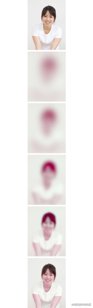 1、正常成人的视力;2、新生儿;3、出生后4周;4、出生后8周;5、出生后3个月;6、出生后6个月。