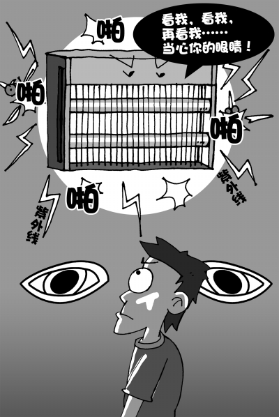因此,一定要对这些悄无声息的“隐形光”提高警惕。使用灭蚊灯时,最好提前打开,有人靠近时要关掉,不能在灯前长时间逗留,尤其是小孩子,更不要开一整晚。在10多平方米的房间内,照射时间过长,一样会像烈日一样,造成皮肤晒黑、灼伤、眼睛干涩疼痛。对于经常要接触验钞机的人,验钞的时候,最好在上面遮盖一张报纸,阻挡绝大部分的紫外线。 |