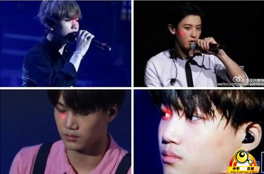 EXO于18、19日在北京举办的演唱会,却传出有人多次拿激光笔,照射舞台上正在表演的成员,引起歌迷的愤怒和不满。部分粉丝在演唱会结束后,发现他们所拍摄的照片中,有人竟用激光笔直射EXO的身体、脸部,甚至眼睛,其中,又以成员KAI被照射到的次数最多,消息一传出,立刻引起一连串的愤怒声浪,不少人都担心EXO成员的眼睛因激光笔照射而出现问题。