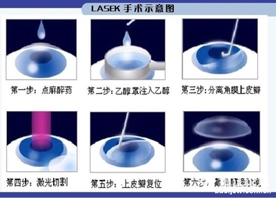 lasek Lasek手术是用上皮刀切出一个厚度为60-80微米,直径8-10毫米,蒂的弧度为30度的上皮瓣,掀开上皮瓣后用准分子激光进行原位磨镶来改变角膜的屈光度从而达到矫正近视、散光的目的,而后上皮瓣复位。手术后对于超高度数的患者可以解决像差,眩光问题。由于上皮瓣厚度为60-80微米,所以为高度数,角膜相对较薄的患者解决了厚度问题,同时对于此类患者,安全性也提高了。