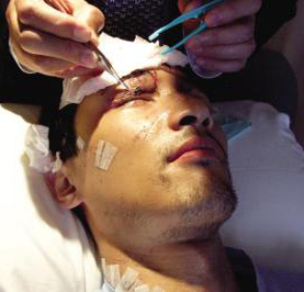 3.眼部热灼伤分为眼睑热灼伤和眼球热灼伤。眼睑热灼伤:往往创面范围较大,坏死组织及创面渗出多,故预防感染是第一位重要的。可在无菌操作下清除表面脏物及坏死组织,然后局部涂大量抗生素油膏(如环丙沙星眼膏、金霉素眼膏)。或做抗生素液(如庆大霉素、氧氟沙星眼液)湿敷。结膜囊内涂眼膏,并每日用玻璃棒分离,以防止睑球粘连。有条件时可配戴隐形眼镜(软性)。对眼睑灼伤面积较大,分泌物及坏死组织较多时,应每日换药1次,同时口服或肌肉注射抗生素,预防感染,待创面干净,肉芽组织开始生长时,及时应用表皮移植加以修补。对严重的眼睑Ⅱ、Ⅲ度灼伤,瘢痕畸形较明显者,可在1年后行眼睑整形手术。