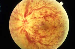 另一种情况则是在全身性疾病的基础上出现眼底动脉硬化。由于眼底血管异常还反映了全身血管系统的异常变化,例如动脉粥样硬化、高血压、糖尿病等患者,除有相应的全身症状外,往往合并眼底视网膜动脉变细、变直,呈铜丝或银丝样改变,与静脉交叉处可见硬化的动脉压迫静脉,称交叉压迫;重者则发生视网膜血管的痉挛、狭窄甚至阻塞、出血,并可出现视网膜的渗出、水肿等改变。眼底病变程度的轻重及发展的急缓,与全身病变的程度和进展有关。这些全身性疾病引起的眼底病变发展到一定程度,就会对视功能造成损害,需要及时采取积极的治疗措施。患有高血压、糖尿病的中老年朋友,除了积极有效地控制全身疾病,包括合理的药物治疗、调整饮食结构和适当的体能锻炼,还需每隔3~6个月检查眼底,争取早发现问题,早采取针对性治疗,这是减少或减轻眼底动脉硬化及其并发症的有效措施。