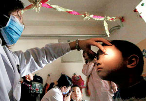 很多家长发现自己的孩子看东西时黑眼球离得很近,因此担心自己的孩子有内斜视(俗称“对眼”或“斗鸡眼”)。专家建议,如果怀疑孩子有斜视,可以拿个小手电(不是强光的那种),在孩子正前方33厘米处垂直照向孩子的两眼中间鼻梁部位,这时观察孩子眼里得到的光点。一般来说,两个眼睛里的光点应该是对称的,都在瞳孔中央位置。如果光点不对称,如一侧的光点向鼻梁一侧,则孩子可能是外斜视,反之则可能是内斜视。不论哪种情况,都要带孩子到眼科就诊了。