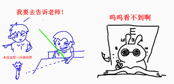 有人说2米是安全距离,但实际上激光的损伤取决于激光的能量、波长、曝光时间、屈光状态、瞳孔大小等等复杂因素。激光笔常见红色,绿色和蓝色激光,其中绿色更容易被黄斑处色素吸收而造成损伤。按照功率分级:功率小于1mW的可见光(波长400-700nm)激光笔为第二类(Class 2或II);功率介于1-5mW的为第三类A(Class 3A或IIIa)。第三类B(Class 3B/IIIb)激光(功率5–500mW)和第四类(Class 4/IV)激光(功率大于500mW)不能以激光笔的名义推广销售。但即便是2类激光,如果近距离直视超过10s也可以造成视网膜的损伤。而市售许多儿童的玩具激光笔是第三类B以上的。所以请家长们忘掉所谓的安全距离,所谓的安全激光笔,因为误伤有时也是难免的,而且运气差点的话,激光会“秒杀”视力。因此尽量不要给孩子买激光笔,告诫孩子远离激光笔,不见最好,遇见了千万也要躲开,一眼也不要多看! |