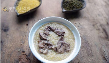 鸡肝2个,小米60克,盐少许。将猪肝洗净切碎,小米淘洗干净,两者一同入锅共煮粥,粥熟,调入盐即可。