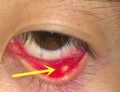 眼结石多出现在上睑,睑结膜上有质硬的黄白色小点状突起,像碎米粒一样,多呈散点状,也有密集成群的。初起时位置较深,结石还埋在结膜下边,一般没有什么自觉症状,以后会逐渐露出结膜表面,对眼睑形成刺激,感觉有异物感,好像眼里进了什么东西似的,若眼球红肿、刺痛,那可能结石长期磨擦损伤了眼角膜。