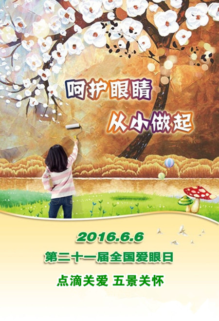 过完欢乐的六一就快到了我们全国爱眼日了。1992年,天津医科大学眼科教授王延华与流行病学教授耿贯一首次向全国倡议设立爱眼日,倡议得到响应并将每年的5月5日定为"全国爱眼日"。1996年,卫生部、教育部、团中央、中国残联等12个部委联合发出通知,将爱眼日活动列为国家节日之一,并重新确定每年的6月6日为"全国爱眼日"。即将到来的 2016年6月6日是第二十一个全国"爱眼日",活动的主题为"呵护眼睛、从小做起"。
