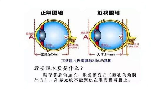近视形成分两部分,一部分是与先天条件有关,比如出生时眼轴就相对较长,也就是从胚胎发育时造成的眼轴过长和遗传因素造成的眼轴过长,这两种是先天性的。后天因素有关的,包括用眼不卫生,眼疲劳及饮食不均衡等造成的调节过度引起的。先天的条件和后天的因素加在一起,形成近视的真实度数。先天性的通常称为轴性近视,可以通过手术矫正的。后天因素造成的影响可预防,通过临床医生的指导,早发现,早干预。最好在儿童3岁-4岁时进行视力检查,如存在生理性远视,通过年龄的增长,可慢慢恢复,如果没有生理性远视,视力很好,不注意的话很快就会转变为近视,年龄越小,眼睛调节力越强。