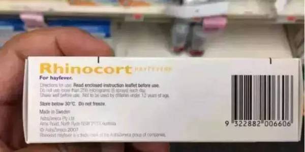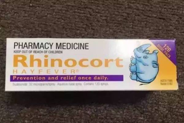 外包装盒上的Rhinocort这不就是国内的“雷诺考特”(布地奈德鼻喷雾剂)吗?