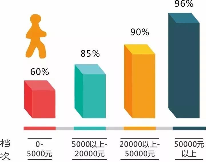 (1)0-5000元档次共有5000元,报销比例为60%,可报销3000元。