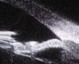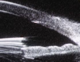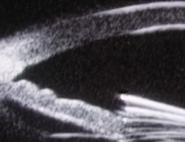 5、超声生物显微镜(UBM)结果:术后6月人工晶体与角膜内皮最短距离1.97±0.07mm;与自身晶体0.67±0.07mm;人工晶体上方与角膜内皮面最短距离1.27±0.15 mm;鼻侧与角膜内皮面最短距离1.41±0.12 mm;下方与角膜内皮面最短距离1.55±0.13 mm;颞侧与角膜内皮面最短距离1.45±0.10 mm。(下图5-10)