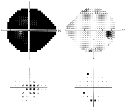 图1 第二次手术后Humphrey自动视野检查及左眼的视力丧失