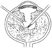 然后用挖掘法向周围逐渐扩大,暂保留玻璃体后界膜。