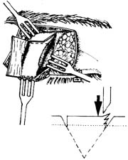 分离两侧骨膜,暴露骨壁,并自眶而将后部较薄弱的骨壁凿断,达眶下裂外侧角。