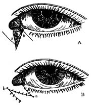 向泪点插入一泪道探针达泪小管阻塞部。在泪小管阻塞部颞侧垂直切开睑缘,露出探针头。