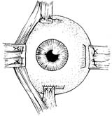 beren则后退内直肌、截除外直肌,并将上、下直肌的颞半侧缝到截除的外直肌上(图4)。
