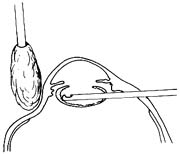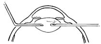1.上方巩膜切口,放与灌注相连呈30°弯针头进入晶状体囊内(图1)。