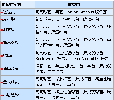 表一 眼部化脓性疾病与病原菌的关系