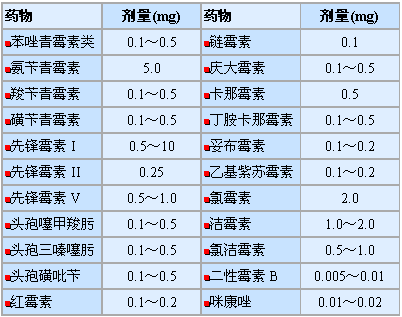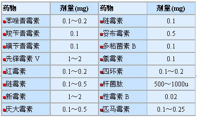 表六 抗菌药物玻璃内注射剂量