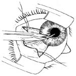 5.于鼻侧或颞侧角巩膜缘内做角膜穿刺,以便术中前房内注入平衡盐水(图10)。