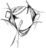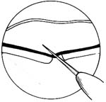切口两端可预置一对褥式缝线,待放液后关闭切口用(图4)。